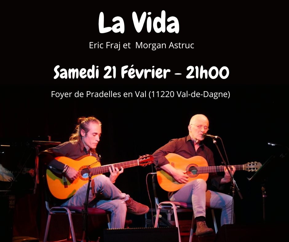À l’invitation de l’association Abribus, Morgan et moi donnerons le concert LA VIDA le 21 février 2026 à 21h au foyer de Pradelles en Val (11220 Val-de-Dagne).