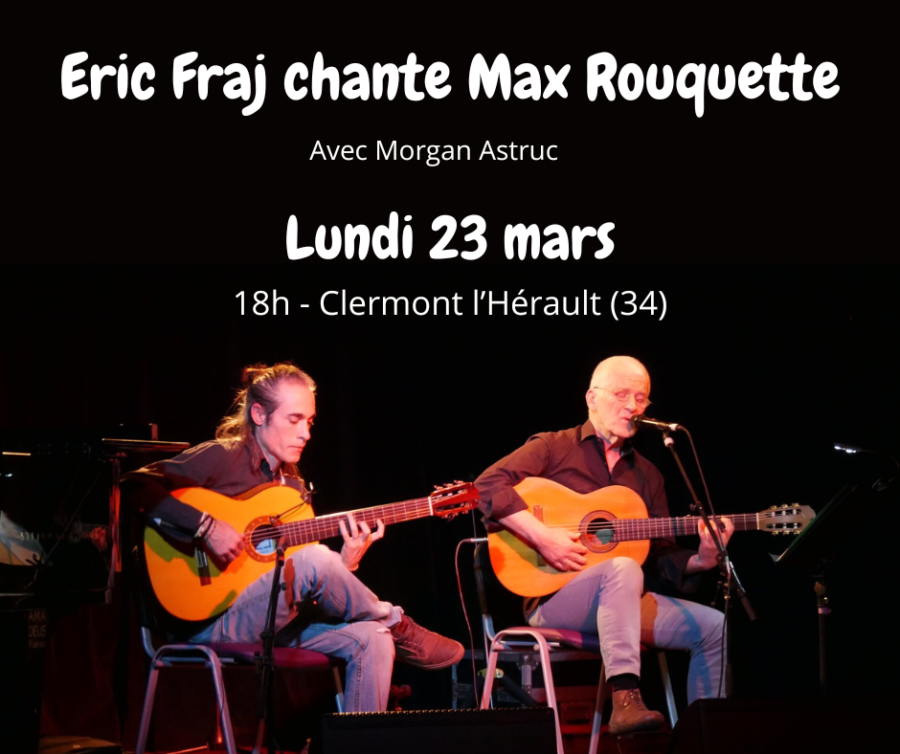 Après Plagnole (31), nous redescendons en Bas-Languedoc, à Clermont l’Hérault (34800), pour donner le concert “Eric Fraj chante Max Rouquette”, au 8 rue Bara, à 18h. Renseignements : tegalos@hotmail.fr / 07 82 74 90 76